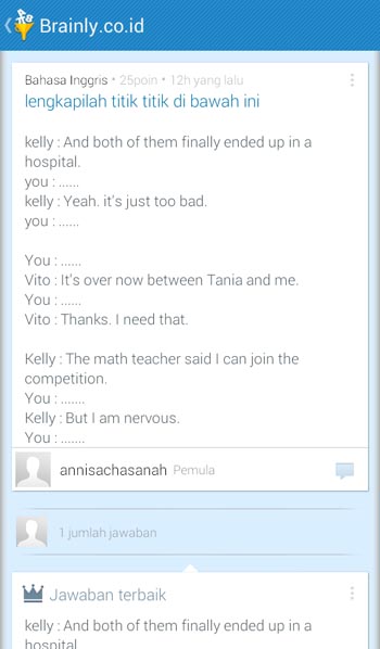 Tidak bisa mengerjakan tugas sekolah karna soal terlalu sulit? Bukan masalah lagi. Gunakan teleponmu untuk bertanya pada komunitas pembelajaran di Indonesia dalam Brainly.co.id. Program sebesar 35 mega byte ini merupakan versi Indonesia dari program serupa hasil karya Brainly.co.