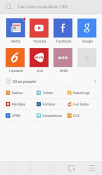 Dari tampilan antarmuka terdapat beberapa pintasan untuk mengakses situr favorit. Yang menjadikannya cukup familier di Indonesia, fitur ini menyediakan pintasan terhadap situs favorit seperti Kaskus, Kompas, Detik dan lain sebagainya. Anda juga dapat mengatur pintasan seperti mengganti situs favorit sehingga dapat diakses hanya dengan sekali sentuh.